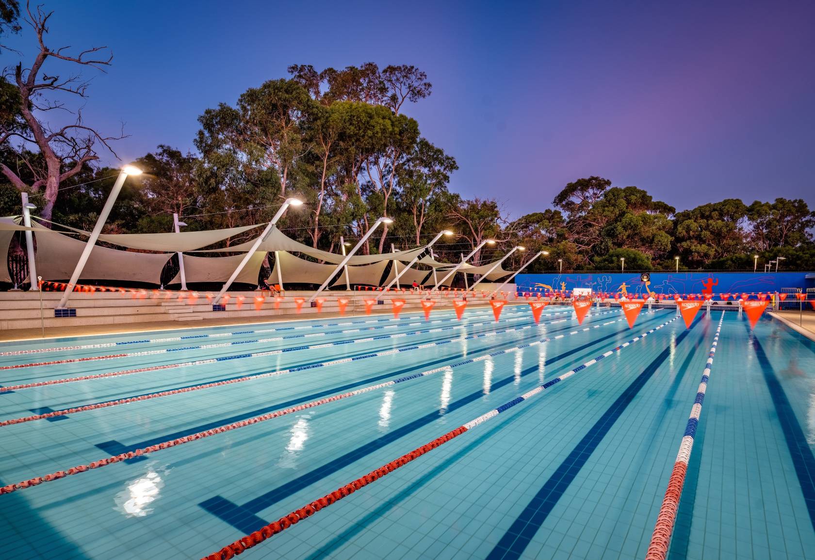 - Outdoor 50 metre lap pool, 8 lanes (26-27 degrees, 1.1-1.8 metre depth)
